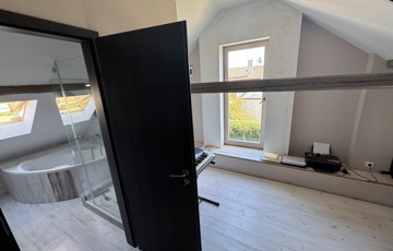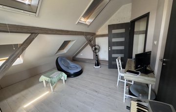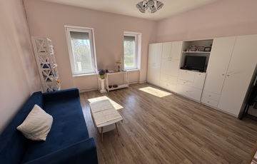 • 2023-as teljes körű felújítás: gépészet, burkolatok, nyílászárók, tetőtér kiépítése