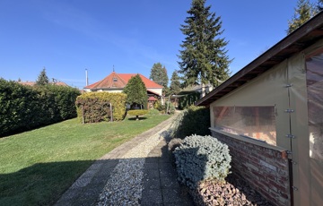 A telek 885 m²-es, parkosított, ápolt, valódi oázis: