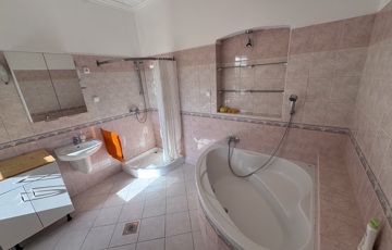 • tágas fürdőszoba káddal és zuhanykabinnal